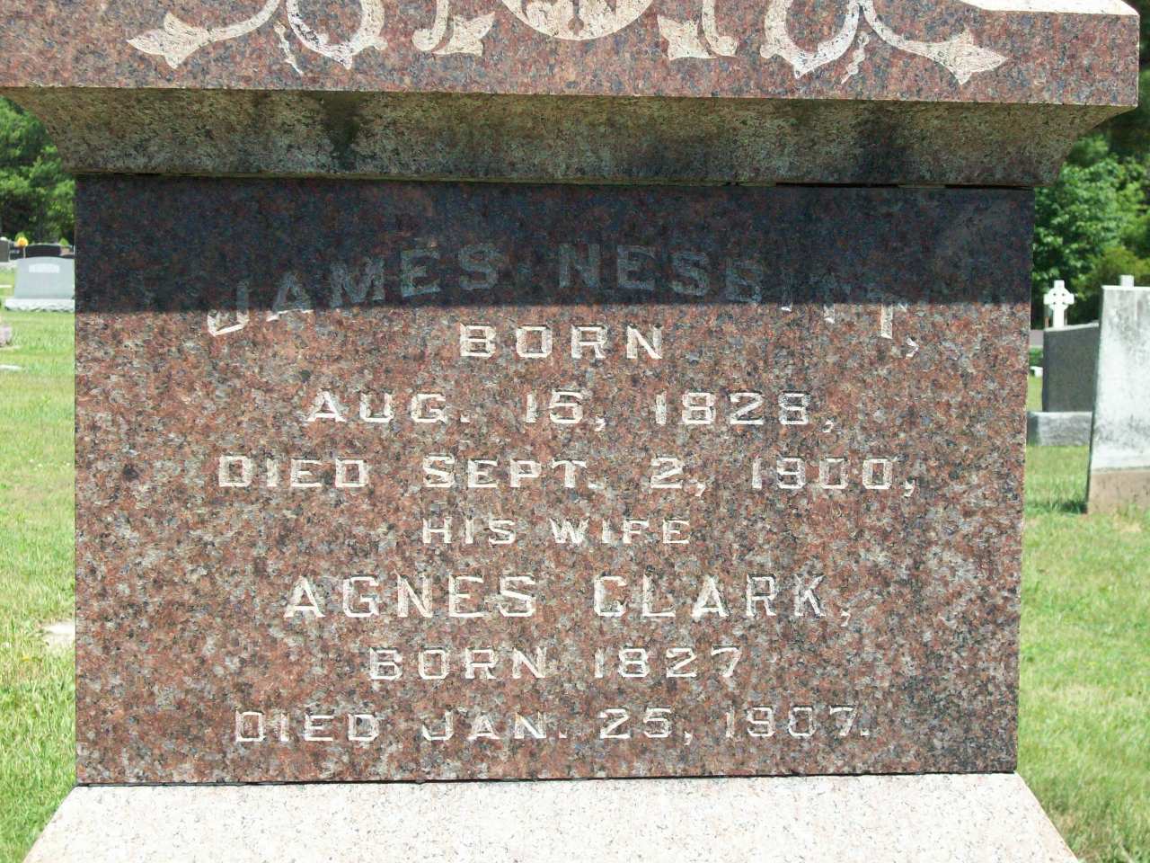 Family | Agnes Clark b. 5 Oct 1830, d. 25 Jan 1907 |
