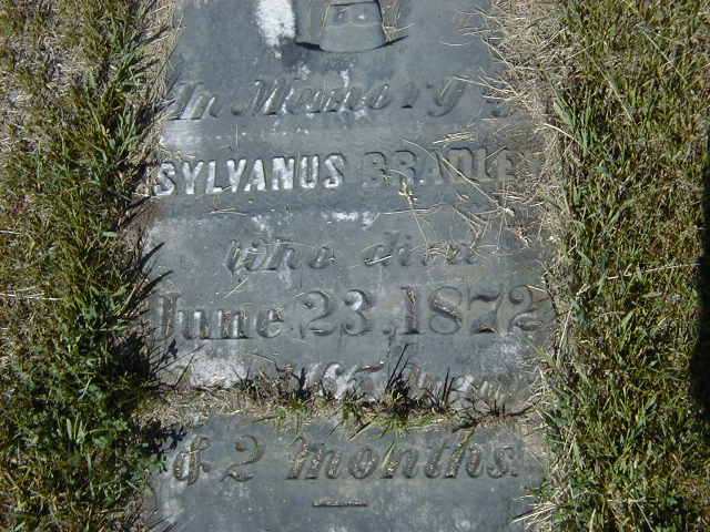 Sylvanus Bradley was born on 22 April 1807 at Haldimand Twp., Northumberland Co., Upper Canada; per GEDCOM of Katie Sweet, May 21, 2007. per marriage register of son Francis Henry Bradley.1,2 He married Sarah "Sally" Tucker, daughter of Isaac Tucker and Lucy Barbury, before 1830 at Haldimand Twp., Northumberland Co., Upper Canada; per marriage register of son Francis Henry Bradley.1 Sylvanus Bradley appeared on the census of 1830 at Conc 3 Lot 16, Haldimand Twp., Northumberland Co., Upper Canada; 1830 Assessment: Sylvanus Bradley; Conc 3, Lot 16, S, ?, 32 acres cult; 1 male over 16; 1 female over 16; Total 2. He appeared on the census of 1833 at Conc 3 Lot 16, Haldimand Twp., Northumberland Co., Upper Canada; 1833 Census & Assessment: Sylvanus Bradley; Conc 3, Lot 16, S, 4 acres uncult., 40 acres cult; 1 male over 16; 2 males under 16; 1 female overs 16; Total 4. He died on 23 January 1872 at Haldimand Twp., Northumberland Co., Ontario, at age 64; Date June 23 1872 per Memorial. per GEDCOM of Katie Sweet, May 21, 2007.2,3 He was buried on 25 January 1872 at Eddystone Cemetery, Haldimand Twp., Eddystone, Northumberland Co., Ontario; Memorial: (See Exhibit) In Memory of; Sylvanus Bradley; Who Died; June 23, 1872; Aged 65 Years; & 2 Months (Eddystone Cemetery, Eddystone, June 9 2007) per GEDCOM of Katie Sweet, May 21, 2007.2,3