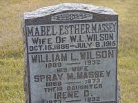 Date 1932 per Memorial.1,3 She was buried on 21 September 1932 at Baltimore Cemetery, Hamilton Twp., Baltimore, Northumberland Co., Ontario; Memorial: (See Exhibit) Mabel Ester Massey; Wife of W. L. Wilson; Oct 15 1886-July 8, 1915; William L. Wilson; 1889 - 1932; His Wife; Spray M. Massey; 1888 - 1973; Their Daughter; Irene D; 1927 - 1932 (Baltimore Cemetery, Baltimore.)1,2