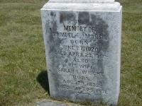Samuel Elmore Marsh was born on 27 June 1820 at Ameliasburgh Twp., Consecon, Prince Edward Co., Upper Canada; Date Jun 27 1820 per Memorial. Date June 1820 & location Consecon per Death Reg'n. - age 59y 10m at death Apr 23 1880. Date 1823 & location Consecon per marr. reg'n. - Anna A. Smith. Date 1821 & location Ont. per 1871 Census. Date 1820 & location UC per 1861 Census. Date 1819 & location Cda. per 1851 Census.1,2,4,5,6,3 He married Sarah Louise Wright, daughter of Alfred James Wright and Marie Louise Bissonette, before 1850 at Canada West; per memorial.2 Samuel Elmore Marsh lived on 15 January 1851 at Conc 1 Lot 24, Murray Twp., Northumberland Co., Canada West; Land Registry Records (B&S A17) show that Johnson W. Marsh & wife sold "46 acres in the south west quarter", Lot 24, Concession 1, Brighton Twp., Northumberland Co. to Samuel E. Marsh. ITS Date: Jan 15 1851. Reg'n. Date: Apr 17 1853. (Ontario Land Registry Records, Northumberland Co., Brighton Twp., Conc 01, page 096 of 307)