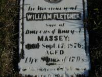 per GEDCOM of James A. McKane, May 5, 2007.1,3,4 He died on 17 September 1876 at Cramahe Twp., Northumberland Co., Ontario, at age 1; Date Sep 17 1876 per Memorial & CEMSearch. Date 1876 per GEDCOM of James A. McKane, May 5, 2007.1,4,5 He was buried on 19 September 1876 at Percy Twp., Northumberland Co., Ontario; Memorial: (See Exhibit) In Memory of; William Fletcher; Son of; Marcus & Mary A; Massey; Died Sept. 17, 1876; Aged; 1 y'r 8 Mo's & 17 D's (Academy Hill Cemetery, Haldimand Twp., April 28, 2007)