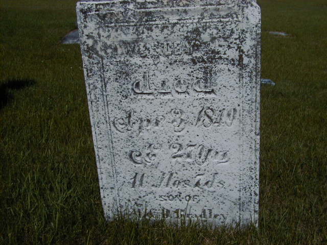 Note: Year??? 1847-1849??1,2 He was buried on 5 April 1849 at Eddystone Cemetery, Haldimand Twp., Northumberland Co., Ontario; Memorial: (See Exhibit) Wesley S; Died; Apr. 3, 1849; A. 27 Hrs; 11 Mos. 7 d's; Son of; W. & D. Bradley (Eddystone Cemetery, Haldimand Twp., June 9, 2007)