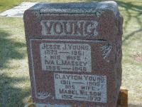 per Memorial.2,3 Jesse J. Young lived on 10 April 1933 at Warkworth, Northumberland Co., Ontario; Informant for Death Reg'n. of his mother Victooria Adelaide (Garbutt) Young.4 He died in 1961 at Ontario; Date 1961 per Memorial.2 He was buried in 1961 at Warkworth Cemetery, Warkworth, Northumberland Co., Ontario; Memorial: (See Exhibit) YOUNG; Jesse J. Young; 1873 - 1961; His Wife; Iva L. Massey; Clayton Young; 1911 - 1999; His Wife; Mabel Wilson; 1912 - 1979 (Warkworth Cemetery, Warkworth, Apr 28, 2007.)2