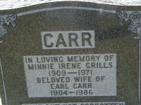 Earl Carr was born on 24 August 1904 at Percy Twp., Northumberland Co., Ontario; Late Birth Reg'n.#502793: Name: Earl Carr; Date: Aug 24 1904; Parents: Herman Carr & Hannah Madis, both b. Brighton Twp; Inf.: Earl Carr; Reg'd.: Nov 19 1969, Whitby Ontario Late Birth Registration, #502793-1904, ancestry.com.)2 He married Minnie Irene Grills, daughter of Alfred John Grills and Jennie Edmondson, circa 1930; per Memorial.3 Earl Carr was buried in 1986 at Warkworth Cemetery, Warkworth, Northumberland Co., Ontario; Memorial: (See Exhibit) CARR; In Loving Memory of; Minnie Irene Grills; 1909 - 1971; Beloved Wife of; Earl Grills; 1904 - 1986 (Warkworth Cemetery, Warkworth, Apr. 28, 2007.)3 He died in 1986; Date 1986 per Memorial.