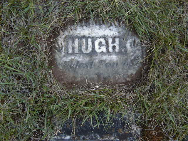 Hugh Marsh was born in February 1878 at Brighton Twp., Northumberland Co., Ontario; Date Feb 1878 per Death Reg'n. - age 18 mo. at death Aug 16 1879.1 He died on 16 August 1879 at Brighton Twp., Northumberland Co., Ontario, at age 1; Death Reg'n.#010007: Name: Hugh Marsh; Date: Aug 16 1879; Age: 18 mo; Born: Brighton Twp; Status: son of Napoleon Marsh; Phys.: Dr. Goldsmith; Inf.: W. H. McArthur, Brighton Twp; Reg'd.: Sep 2 1879; Rel.: Pres; Reg'r.: T. J. Wright (Ontario Death Registration, #010007-1879, ancestry.com.)2 He was buried on 18 August 1879 at Codrington Catholic Cemetery, Brighton Twp., Northumberland Co., Ontario; Memorial: (see Exhibit) Hugh C; Eldest son of; M. & N. Marsh... (stone broken, covered up) (Codrington Catholic Cemetery, Brighton Twp., Aug 26, 2007)
