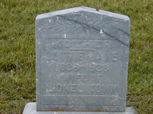CemSearch: Name: Lottie Jane Town; Maiden: Samis; Born: Sep 19 1885; Died: Dec 12 1938; Age: 53y 3m; ID: HILTON114; No other named; Cemetery: Hilton Cemetery, Conc 2, Lot 4, Brighton Twp., Northumberland Co; Note: Wife of Lionel Herbert Town married Dec. 2nd, 1902. Dau of Ottis and Zipporah Ann (Hartford) Samis, Sibling to Moses, Lucy Ann, Samis, Mother of Grace Mae, Kenneth George, Percy Melville, Harvey, William Earl Town, Info from Ancestry.com. (https://www.cemsearch.ca/burial/?pid=HILTON114%5E0.)2,3