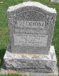 George Wallace Reddom was born on 13 May 1886 at Brighton Twp., Northumberland Co., Ontario; Date May 13 1886 & location Brighton per FindaGrave. "Geo. W. Reddom born 13th of May 1886" from Reddom Bible, pictures taken of pages Sep 5 2013, Barb Hunt vist. Date 1886 & location Ont. per 1931 Census. Date 1886 & location Ont. per 1921 Census. Date May 1886 & location Ont. per 1911 Census. Date May 13 1886 & location Ont. rural per 1901 Census. Date 1887 & location Ont. per 1891 Census. Date 1886 & location Brighton Twp. per marr. reg'n.1,2,3,4,5,6,7,8 He appeared on the census of April 1891 at Brighton Twp., Northumberland Co., Ontario; Age 4 at 1891 Census: see William Reddom.3 He appeared on the census of April 1901 at Brighton Twp., Northumberland Co., Ontario; Age 14 at 1901 Census: see William Reddom.2 He married Ida Rose Rittwage, daughter of Francis Lewis "Frank" Rittwage and Adeline Wicks, on 28 November 1906 at Brighton Twp., Northumberland Co., Ontario; Marriage Reg'n.#014471: Groom: George Wallace Reddam; Age: 20; Res. & Born: Brighton Twp; Status: bachelor; Occ.: farmer; Rel.: Meth; Parents: Wm. Reddam & Edela Towns; Bride: Ida Rose Rittwage; Age: 19; Res. & Born: Brighton Twp; Status: spinster; Rel.: Meth; Parents: Frank Rittwage & Adeline Wicks; Wit.: Harry Reddam & Ethel Rittwage, Brighton Twp; Date: Nov 28 1906; Place: Brighton Twp; Performed by: J. S. Leckie; Reg'd.: Nov 29 1906; Reg'r.: Fred O. Wade (Ontario Marriage Registration, #014471-1906, ancestry.com.)9 George Wallace Reddom lived on 7 June 1911 at Conc B Lot 22, Murray Twp., Northumberland Co., Ontario; Residence per 1911 Census: Conc B, Lot 22, Murray Twp.4 He appeared on the census of 7 June 1911 at Murray Twp., Northumberland Co., Ontario; Age 25 at 1911 Census: Reddom, George, 25, b. Ont. May 1886, Eng., Meth., farmer, married; Ida, 24, b. Ont. Mar 1887, Eng., Meth., married; Harold, 3, b. Ont. Aug 1907, son; Lloyd, 1, b. Ont. aug 1900, son (1911 Census Online: Murray Twp., dist. 101, sub-dist. 11, pg. 5 of 11, line 16 - Conc B, Lot 22.)4 He appeared on the census of 6 June 1921 at Brighton Twp., Northumberland Co., Ontario; Age 35 at 1921 Census: Reddom, George, 35, b. Ont., p.b. Ont., Eng., Meth., farmer, married; Ida, 34, b. Ont., p.b. Ont., Eng., Meth., married; Harold, 14; Lloyd, 12; Florence, 10; Norma, 8; Willie, 5; Stella, 4; Rose, 2 (1921 Census: Brighton Twp., Northumberland Co., dist. 107, sub-dist. 5, pg. 3, line 23 - ancestry.ca.)7 He George Reddom appears in The Latimer Photos which were taken by Hugh Latimer during the early 1920s and late 1930s at his father's General Store in Orland. (The Latimer Photos, Codrington Public Library) circa 1930 at Brighton Twp., Orland, Northumberland Co., Ontario.10 He appeared on the census of 1931 at Brighton Twp., Northumberland Co., Ontario; Age 45 at 1931 Census: Reddom, George, 45, b. Ont., p.b. Ont. & USA, Eng., UC, dairy farmer, married; Ida, 44, b. Ont., p.b. Ont., Eng., UC, homemaker, married; Harold, 23, b. Ont., p.b. Ont., Eng., UC, farmer, single; Lloyd, 21, b. Ont., p.b. Ont., Eng.., UC, farmer, single; Florence, 19; Norma, 17; Stella, 14; Willie, 15; Rose, 11; Eva, 9; Rae, 7; Irene, 5; Hugh, 3 (1931 Census: Brighton Twp., Northumberland Co., dist. 133, sub-dist. 6, pg. 6, line 1 - Brighton Twp. - ancestry.ca.)8 He lived in 1935 at Brighton Twp., Hilton, Northumberland Co., Ontario; "179 Reddom, Geoge, farmer, Hilton" & "180 Reddom, Mrs. George (W), married woman, Hilton" Canada Voters Lists, 1935, Northumbedrland Co., Brighton Twp., pg. 11 of 126, ancestry.ca.11 He lived in 1945 at Brighton Twp., Northumberland Co., Ontario; "137 Reddom, Geoge, farmer, Brighton" & "138 Reddom, Mrs. George - Brighton" Canada Voters Lists, 1945, Northumbedrland Co., Brighton Twp., pg. 87 of 178, ancestry.ca.11 He lived on 31 March 1952 at Village Lot 22, Main St. South, Brighton, Northumberland Co., Ontario; Land Registry Records (Grant 8720) show that William H. Conn & wife sold "said lot" to George W. Reddom & Ida R. Reddom (Joint Tenants) for $5,000. ITS Date: Mar 31 1952. Reg'n. Date: Apr 7 1953. (Ontario Land Registry Records, Northumberland Co., Brighton Village, Book 004, pg. 093 of 399, (Conc 1, Lot 2 of Brighton Twp.), page copied from OnLand.ca by Dan Buchanan, Apr 5 2023.)12 He lived in 1958 at Main St., Brighton, Northumberland Co., Ontario; "178 Reddom, Geoge, retired, Main St." & "179 Reddom, Mrs. George - Main St., Brighton" Canada Voters Lists, 1958, Northumbedrland Co., Brighton Village, pg. 61 of 187, ancestry.ca.11 He died on 16 September 1958 at Brighton, Northumberland Co., Ontario, at age 72; Date Sep 16 1958 & location Brighton per FindaGrave. "George Wallace Reddom September 16, 1958" from Reddom Bible, pictures taken of pages Sep 5 2013, Barb Hunt vist. Date Sep 16 1958 & location Brighton per family tree of zodiacblue on ancestry.com, Jul 23 2013.13,5,6 He was buried on 19 September 1958 at McPhail's Cemetery, Brighton Twp., Northumberland Co., Ontario; FindaGrave: Name: George Wallace Reddom; BIRTH: 13 May 1886, Brighton, Northumberland County, Ontario, Canada; DEATH: 16 Sep 1958, (aged 72), Brighton, Northumberland County, Ontario, Canada; BURIAL: McPhails Cemetery, Brighton Twp., Northumberland County, Ontario, Canada; MEMORIAL ID: 135226370 (https://www.findagrave.com/memorial/135226370/george-wallace-reddom.)6