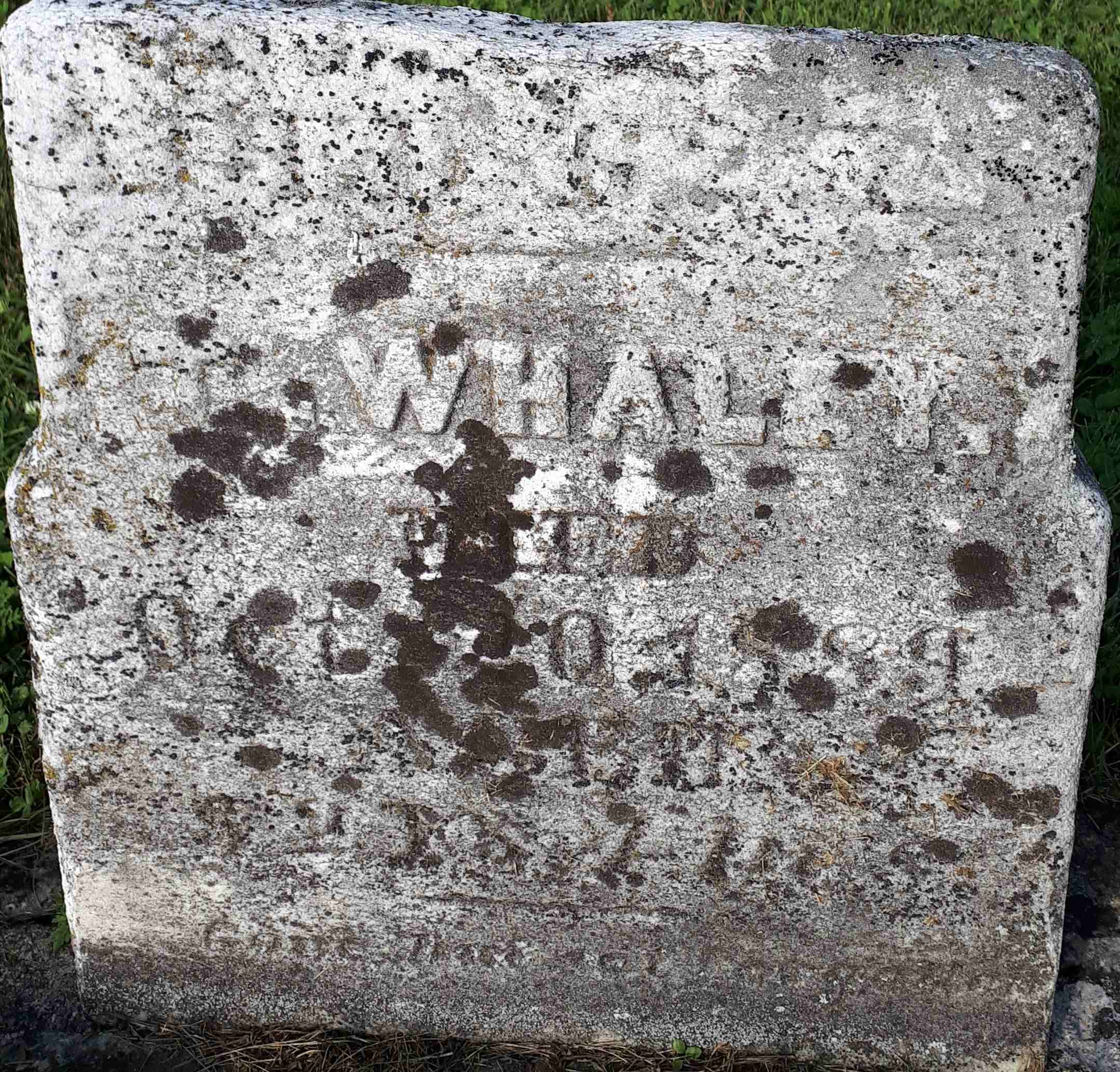 Theophilus Whaley was born on 12 June 1807 at U.S.A; Date Jun 12 1807 per Memorial - age 82y 4m 8d at death Oct 20 1889. Date 1807 & location United States per Death Reg'n. Date 1808 & location USA per 1881 Census. Date 1809 & location US per 1871 Census. Date 1809 & location Cda. per 1861 Census. per marriage reg'n. of daughter Hester Ann (Whaley) McColl. Date Jun 1 1807 & location Cda. per family tree of Alan Carl Wiley on ancestry.ca, Feb 4 2023.1,2,3,5,4,6,7 He married Susanna Tripp before 1840; per marriage reg'n. of daughter Hester Ann (Whaley) McColl.1 Theophilus Whaley appeared on the census of April 1861 at Tyendinaga Twp., Hastings Co., Canada West; Age 52 at 1861 Census: Whale, Threoflas, 52, b. Cda., WM, lab., married; Susanna, 40, b. Cda., WM, married; Hester, 18; Sarah, 17; Daniel, 14; Hannah, 10; Susan, 8; William, 3; Peter, 6; Sidney, 4; Jane, 4 (1861 Census: Tyendinaga Twp., Hastings Co., pg. 838 of 983, line 21, ancestry.ca.)4 He appeared on the census of April 1871 at Murray Twp., Northumberland East Co., Ontario; Age 62 at 1871 Census: Whaley, Theophilus, 62, b. US, Dutch, WM, farmer, married; Susanna, 47, b. Ont., Dutch, WM, married; Daniel, 24, b. Ont., Dutch, WM, lab., single; Cyntha, 22; Hanna, 20; Susan, 18; Peter, 16; Sidney, 14; Delila, 7; Sarah, 5 (1871 Census: Murray Twp., Northumberland East Co., dist. 55, sub-dist. c-3, pg. 8, line 13 - ancestry.ca.)6 He appeared on the census of April 1881 at Murray Twp., Northumberland East Co., Ontario; Age 73 at 1881 Census: Waley, The...?(m), 73, b. US, Ger., CM, gentleman, married; Susanna, 58, b. Ont., Ger., CM, married; Mariah, 30, b. Ont., Ger., CM, single; Eliza, 26?, Ger., CM, single; Sidney, 23?, Ger., CM, lab., single; Delila, 17 (1881 Census: Murray Twp., Northumberland East Co., dist. 123, sub-dist. C?, pg. 40, line 12 - ancestry.ca.)7 He died on 20 October 1889 at Murray Twp., Northumberland Co., Ontario, at age 82; Death Reg'n.#012162: Name: Theopholes Whaley; Date: Oct 20 1889; Age: 82; Occ.: lab; Born: United States; Cause: old age; Phys.: H.M. Day; Inf.: D. Whaley; Reg'd; Oct 28 1889; Rel.: Meth; Reg'r.: T.R. Garratt (Ontario Death Registration, #012162-1889, ancestry.ca) per family tree of Alan Carl Wiley on ancestry.ca, Feb 4 2023.2,8 He was buried on 22 October 1889 at Carman Cemetery, Brighton Twp., Carman, Northumberland Co., Ontario; Memorial: (see Exhibit) In Memory of; T. Whaley; Died; Oct. 20, 1889; Aged; 82 Y's, 4 M. 8D (Carman Cemetery, Brighton Twp., image by Dan Buchanan, Aug 12 2023.)3