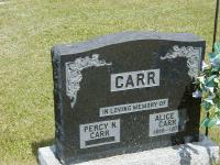 Percy Neol Carr was born on 10 February 1911 at Conc 4 Lot 33, Brighton Twp., Northumberland Co., Ontario; Birth Reg'n.#035309: Name: Percy Neol Carr; Date: Feb 10 1911; Parents: Walter A. Carr & Ethel W. Phillips; Marriage: Sep 11 1907, Conc 5, Lot 33, Brighton Twp; Inf.: Walter A. Carr, father, farmer, Codrington; Phys.: G. S. Black; Reg'd.: Mar 9 1911; Reg'r.: Fred O. Wade, Brighton Twp. (Ontario Birth Registration, #035309-1911, ancestry.com) Date 1911 & location Ont. per 1921 Census. per Death Notice of Walter Abram Carr.1,7,6 He appeared on the census of 1 June 1921 at Brighton Twp., Northumberland Co., Ontario; Age 10 at 1921 Census: see Walter Carr.6 He lived circa 1930 at Brighton Twp., Orland, Northumberland Co., Ontario; Percy Carr appears in The Latimer Photos which were take by Hugh Latimer during the late 1920s and early 1930s at his father's General Store at Orland. (The Latimer Photos, Codrington Public Library.)8 He married Alice Jean Dingwall on 3 April 1940; per Memorial. Date Apr 3 1940 per GEDCOM of Claude Lemay (beaclo@ntl.sympatico.ca) Jul 9 2013.2,4 Percy Neol Carr lived on 21 June 1974 at Peterborough, Ontario; per Death Notice of Walter Abram Carr.1 He lived on 17 March 1980 at Peterborough, Ontario; " .. dear mother of ... Percy, Peterborough ... " per Death Notice of Ethel Carr from The Tweedsmuir Histories, copied from microfilm at The Metro Toronto Reference Library, Nov. 2007.1 He Memorial: (See Exhibit) CARR; Percy N; --- ; Alice J; 1916 - 1975 (McPhail's Cemetery, Brighton Twp.) circa 2005 at McPhail's Cemetery, Brighton Twp., Northumberland Co., Ontario.2