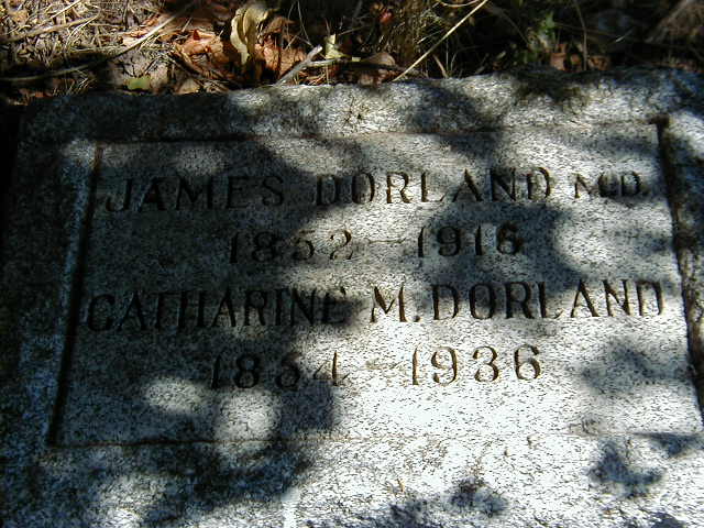 James Dorland was born in February 1852 at Adolphustown Twp., Lennox & Addington Co., Ontario; Date Feb 1852 & location Adolphustown per Death Reg'n. Date 1852 per Memorial.1,2 He lived on 20 August 1878 at Milwaukee, Wisconsin, U.S.A; Residence Milwaukee per marr. reg'n.3 He married Catherine Maria Vandyck, daughter of Steven V. Vandyck and Mary ?, on 20 August 1878 at Napanee, Lennox & Addington Co., Ontario; Marriage Reg'n.#005706: Groom: James Dorland; Age: 26; Res.: Milwaikee, Minn; Born: Adolphustown; Status: bachelor; Occ.: Physician; Parents: John P. & Eleanor Ann Dorland; Bride: Catherine Maria Vandyck; Age: 24; Res.: Napanee; Born: Hallowell Twp; Status: spinster; Parents: Steven V. & Mary Vandyck; Wit.: Redford Dorland, Adolphustown & Mary E. Vandyck; Date: Aug 20 1878; Place: Res. of Mary Vandyck, Napanee; Rel.: CE; Performed by: Rev. J. J. Bogart (Ontario Marriage Registration, #005706-1878, ancestry.com.)4 James Dorland died on 10 December 1916 at Conc 2, Adollphustown Twp., Lennox & Addington Co., Ontario, at age 64; Death Reg'n.#020274: Name: James Dorland; Date: Dec 10 1916; Age: 64y 10m; Born: Adolphustown; Res.: Conc 2, Adolphustown; Occ.: Physician; Parents: John P. Dorland & Eleanor Daly; Cause: apoplexy; Phys.: H. S. Northman, Dorland; Reg'd.: Dec 10 1916; Reg'r.: T. N. Davis (Ontario Death Registration, #020274-1916, ancestry.com.)5 He was buried on 12 December 1916 at St. Paul's Churchyard, Adolphustown, Lennox & Addington Co., Ontario; Memorial: (See Exhibit) James Dorland M.D; 1852 - 1916; Catharine M. Dorland; 1854 - 1936 (St. Paul's Churchyard, Adolphustown.)2