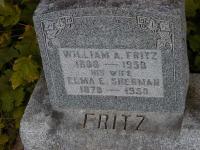 William Arthur Fritz was born on 8 May 1880 at Ontario; Date 1880 per Memorial. Date 1880 & location Ont. per 1921 Census. Date May 1880 & location Ont. per 1911 Census. Date May 8 1880 & location Ont. rural per 1901 Census.1,4,2,3 He appeared on the census of April 1901 at Brighton Twp., Smithfield, Northumberland Co., Ontario; Age 20 at 1901 Census: see Edward Fritz.1 He married Elma E. "Nellie" Sherman, daughter of John Spencer Sherman and Annie Clarissa Dulmage, circa 1910 at Ontario; per 1911 Census.4 William Arthur Fritz appeared on the census of 3 June 1911 at Conc A Lot 26, Brighton Twp., East Northumberland Co., Ontario; Age 31 at 1911 Census: Frtiz, William, 31, b. Ont. May 1880, Ger., Meth., farmer/teamster, married; Nellie, 33, b. Ont. Mar 1878, Eng., Meth., married; Mary, 2/12, b. Ont. mar 1901, Ger., Meth., dau; Sherman, Prudence, 49, b. Ont. Dec 1861, Scot., Meth., dressmaker, mother-in-law, widow (1911 Census: Brighton Twp., East Northumberland Co., dist. 101, sub-dist. 16-2, (101-5), pg. 3, line 39 - Conc A, NW 1/2 Lot 26 - ancestry.ca.)4 He appeared on the census of 1921 at McGill St., Trenton, Hastings West Co., Ontario; Age 41 at 1921 Census: Fritz, William Arthur, 41, b. Ont., p.b. Ont., Ger., Meth., railway car repair, married; Elma Eugene, 43, b. Ont., p.b. Ont., Eng., Meth., married; Mary Elizabeth, 10, p.b. Ont., p.b. Ont., Ger., Meth., dau; Ellena Evelyn, 7, dau; Annie Louise, 5, dau. (1921 Census: Trenton Town, dist. 90, sub-dist. 43, pg. 6, line 5 - McGill St., West Ward - ancestry.ca.)3 He was buried in 1950 at Greenwood Cemetery, Smithfield, Northumberland Co., Ontario; Memorial: (see Exhibit) William A. Fritz; 1886 - 1950; His Wife; Elma E. Sherman; 1878 - 1950; FRITZ (Greenwood Cemetery, Smithfield, July 9, 2004.)2 He died in 1950; Date 1950 per Memorial.2