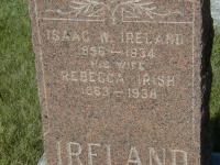 CemSearch: Name: Isaac W. Ireland; Born: 1856; Died: 1934; Age: 78y; ID: SALEM0521; Other names: Ireland, Rebecca [Irish] (1863-1938); Cemetery: Salem Cemetery, Conc 1, Lot 21, Cramahe Twp., Village of Salem, Northumberland Co., Sec 2 Row 20 Plot 1; Note: Husband of Rebecca Irish. (https://www.cemsearch.ca/burial/?pid=SALEM0521%5E0.)3,7