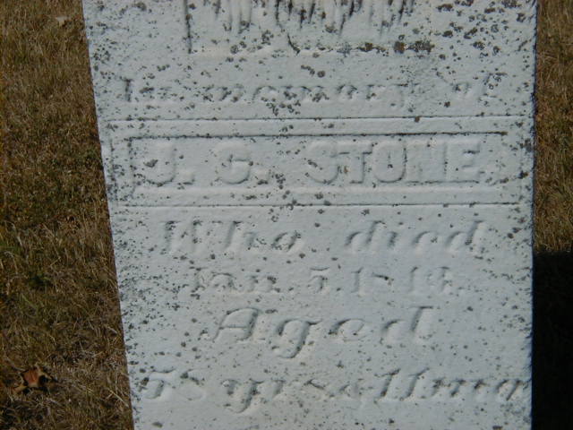 Note: Not sure where this fellow should go. Based on his birth year (as closely as it can be determined by Memorial, he would appear to be a son of Giles???1 He died on 5 January 1849 at Percy Twp., Northumberland Co., Ontario, at age 58; Date Jan 5 1849 per Memorial.1 He was buried on 7 January 1849 at Stone's Cemetery, Percy Twp., Northumberland Co., Ontario; Memorial: (See Exhibit) In Memory Of; J. C. Stone; Who Died; Jan. 5, 1849? Aged; 58 yr's & 11 mo's (Stone's Cemetery, Percy Twp., June 25 2007.)1