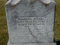 Samuel Ryal was born on 21 March 1843 at Cramahe Twp., Northumberland Co., Ontario; Date 1843 per Memorial - age 65 at death 1908. Date 1843 & location Cramahe Twp. per Death Reg'n. Dat eMar 21 1833 & location Ont. rural per 1901 Census. Date 1843 & location Ont. per 1891 Census. Date 1843 & location Ont. per 1881 Census. Date 1846 & location Ont. per 1871 Census. Date 1843 & location UC per 1861 Census. Date 1853 & location Cramahe Twp. per marr. reg'n.1,2,3,4,5,6,7,8 He appeared on the census of April 1861 at Cramahe Twp., Northumberland Co., Ontario; Age 18 at 1861 Census: see William Ryal.8 He appeared on the census of April 1871 at Cramahe Twp., Northumberland Co., Ontario; Age 25 at 1871 Census: see William Ryal.3 He appeared on the census of April 1881 at Cramahe Twp., Northumberland Co., Ontario; Age 38 at 1881 Census: see William Ryal.1 He married Anna M. Sills, daughter of William C. Sills and Minerva ?, on 11 January 1888 at Belleville, Hastings Co., Ontario; Marriage Reg'n.#004782: Groom: Samuel Ryal; Age: 35; Res. & Born: Cramahe Twp; Status: bachelor; Occ.: farmer; Parents: William & Annie Ryal; Bride: Annie M. Sills; Age: 30; Res. & Born: Thurlow Twp; Status: spinster; Parents: William & Minerva Sills; Wit.: William C. Sills, Thurlow & Maggie M. Wallace, Belleville; Date: Jan 11 1888; Place: Belleville; Rel.?: Meth; Performed by :A. Campbell (Ontario Marriage Registration, #004782-1888, ancestry.com.)2 Samuel Ryal appeared on the census of April 1891 at Cramahe Twp., Northumberland Co., Ontario; Age 48 at 1891 Census: Ryal, Samuel, 48, b. Ont., p.b. England, Meth., farmer, married; Annie, 35, b. Ont., p.b. Ont., Meth., married; Annie, 11? (1891 Census Online: Cramahe Twp., pg. 64 of 69, line 13 - ancestry.com.)6 He appeared on the census of April 1901 at Conc 10 Lot 21, Cramahe Twp., Morganston, Northumberland Co., Ontario; Residence per 1901 Census: Conc 10, Lot 21, Cramahe Twp. - Morganston Village.7 He appeared on the census of April 1901 at Cramahe Twp., Morganston, Northumberland Co., Ontario; Age 58 at 1901 Census: Ryall, Samuel, 58, b. Ont. r. Mar 21 1833, Eng., Meth., farmer, married; Annie M., 43, b. Ont. r. Aug 31 1857, Eng., Meth., marrie;d Hannah P., 11, b. Ont. r. Sep 7 1889, daughter; Nettie V., 6 mo., b. Ont. r. Oct 14 1900, daughter (1901 Census Online: Cramahe Twp., dist. 95, sub-dist. e-4, pg. 2, line 2, T-6485 - Conc 10, Lot 21, Morganston.)7 He lived on 4 May 1905 at Cramahe Twp., Northumberland Co., Ontario; Informant for Death Reg'n. of his brother Richard Ryal.4 He died on 15 May 1908 at Cramahe Twp., Northumberland Co., Ontario, at age 65; Death Reg'n.#021035: Name: Samuel Ryal; Date: May 15 1908; Age: 65; Res. & Born: Cramahe Twp; Occ.: farmer; Cause: pheumonia, 5 days; Phys.: Dr. Black; Rel.: Meth; Inf.: C. L. Cryderman; Reg'd.: May 16 1908; Reg'r.: C. A. Wilson (Ontario Death Registration, #021035-1908, ancestry.com.)9 He was buried on 17 May 1908 at Stone's Cemetery, Percy Twp., Northumberland Co., Ontario; Memorial: (See Exhibit) Samuel Ryal; Died May 15, 1908; Aged 65 Years; His Wife; Anna M. Sills; Died Nov. 24, 1917; Aged 60 Years (Stone's Cemetery, Percy Twp., June 25 2007.)5