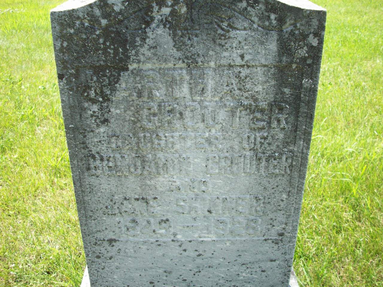 Martha Crouter was born in October 1849 at Cramahe Twp., Northumberland Co., Canada West; Date 1849 per Memorial. Date 1850 & location UC per 1861 Census. Date 1848 & location Cda. per 1851 Census. Date 1849 & location Brighton Twp. per Death Reg'n.1,2,3,4 She appeared on the census of March 1852 at Brighton Twp., Northumberland Co., Canada West; Age 3 at 1851 Census: see Benjamin Crouter.3 She appeared on the census of April 1861 at Brighton Twp., Northumberland Co., Canada West; Age 11 at 1861 Census: see Benjamin Crouter.1 She appeared on the census of April 1871 at Brighton Twp., Northumberland Co., Ontario; Age 22 at 1871 Census: see James Skinner (grandfather.)5 She lived on 1 March 1875 at Conc 7 Lot 10, Brighton Twp., Northumberland Co., Ontario; Land Registry Records (Grant G 1162) show that James H. Skinner acquired "4 equal undivided sixth parts of N. pt of 9 & 10" from "Richard Skinner & wife, Mary A. Jennings, Edwin Jennings, Elizabeth Skinner, Martha J. Crouter, Hester Crouter, Charity Crouter, Benjamin Crouter". ITS Date: Mar 1 1875