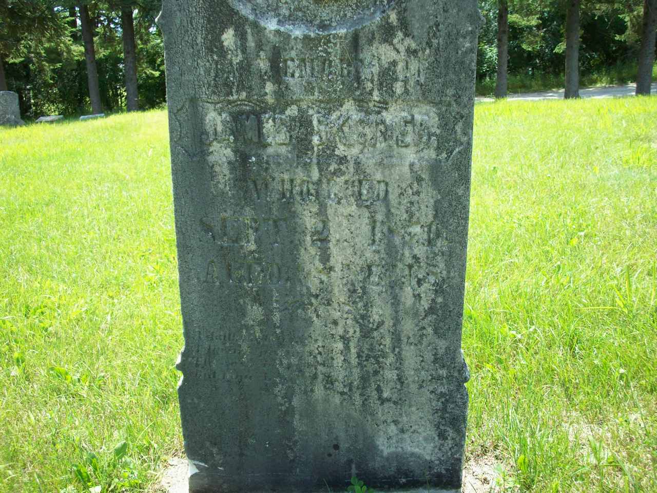 Note: "R. pt." means the north 25 acres of Lot 10 - described as Rear.6 He appeared on the census of April 1861 at Brighton Twp., Northumberland Co., Canada West; Age 58 at 1861 Census: Skinner, James, 58, b. England, WM, farmer, married; Elizabeth, 63, b. England, WM, married; James, 27, b. UC, WM, lab., single; Elizabeth, 22, b. UC, WM, single; Mary, 23, b. UC, WM, single (1861 Census: Brightn Twp., Northumberland Co., pg. 391 of 899, line 32 - ancestry.com.)4 He appeared on the census of April 1871 at Brighton Twp., Northumberland Co., Ontario; Age 68 at 1871 Census: Skinner, James, 68, b. England, Eng., WM, farmer, married; Elizabeth, 74, b. England, EM, married; Elizabeth, 32, b. Ont., WM, single; Crowter, Marthy, 22, b. Ont., Ger., Meth., single (1871 Census: Brighton Twp., dist. 55, sub-dist. C-3, pg. 5, line 16 - ancestry.com.)5 He lived in April 1871 at Conc 8 Lot 9, Brighton Twp., Northumberland Co., Ontario; Residence per 1871 Census: Conc 8, Lot 9, 90 acres, owner.5 He died on 3 September 1871 at Brighton Twp., Northumberland Co., Ontario; Death Reg'n.#012561: Name: James Skinner; Date: Sep 3 1871; Age: 68; Occ.: yeoman; Born: England; Cause: heart disease; Phys.: none; Inf.: Elizabeth Skinner, Brighton; Reg'd.: Sep 29 1871; Rel.: WM; Reg'r.: A. A. Becker, Brighton Twp. (Ontario Death Registration, #012561-1871, ancestry.com.)8 He was buried on 5 September 1871 at Castleton Cemetery, Castleton, Northumberland Co., Ontario; Memorial: (See Exhibit) In Memory of; James Skinner; Who Died; Sept. 2, 1871; Aged 68 Yrs (Castleton Cemetery, Castleton, Jul 13 2009.)9
