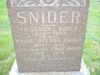 Arthur Martin Snider was born on 15 April 1902 at Con A Lot 24, Brighton Twp., Northumberland Co., Ontario; Birth Reg'n.##028261: Name: Arthur Martin Snider; Date: Apr 15 1902; Parents: Fred Snider, School Teacher, Conc A, Lot 24, Brighton Twp. & Maud Ireland; Inf. & Phys.: C. M. Sanford; Reg'd.: Apr 19 1902 (Ontario Birth Registration, #028261-1902, ancestry.com.)2 He was buried in September 1902 at Greenwood Cemetery, Brighton Twp., Smithfield, Northumberland Co., Ontario; Memorial: (see Exhibit) SNIDER; Frederick I. Snider; 1878 - 1953; His Wife; Maude Ireland Snider; 1875 - 1933; Their Daughter Erma Maude; 1912 - 1975; Wife of; Douglas Remington; Arthur M; Apr - Sep 1902 P.C. (Greenwood Cemetery, Smithfield, July 1 2013, by Dan.)3 He died in September 1902 at Brighton Twp., Northumberland Co., Ontario; Date Sep 1902 per Memorial.3