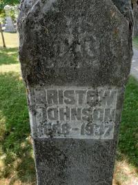 CemSearch: Name: Bristow Johnson; Born: 1868; Died: 1937; ID: TRNTVLA010; Other names: Johnson, Andrew (1789-1892), Johnson, Charles ( - ), Johnson, Edith ( -1873), Johnson, Margaret [Wyatt] (1838-1907), Johnson, Mary Ann [Graham](1811-1883), Johnson, William (1839-1922); Cemetery: Trent Valley Cemetery, Conc 13, Lot 20, Percy Twp., Village of Hastings, Northumberland Co., Sec A Row 010 Plot W-1 (https://www.cemsearch.ca/burial/?pid=TRNTVLA010%5E2)