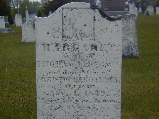 Margaret Varty was born on 30 March 1793 at Ernestown Twp., Lennox & Addington Co., Upper Canada; Date Mar 30 1793 per Memorial - age 56y 7m ?2d? at death Nov 1 1849. Date May 4 1793 & location Ernestown per GEDCOM of Robert Graham, June 26, 2009.1,2 As of circa 1808,her married name was Anderson.1 She married Thomas Anderson, son of Thomas Anderson Sr. and ? ?, circa 1808 at Murray Twp., Northumberland Co., Upper Canada; per GEDCOM of Robert Graham, June 26, 2009.1 Margaret Varty died on 1 November 1849 at Ernestown Twp., Lennox & Addington Co., Canada West, at age 56; Date Nov 1 1849 per Memorial. Date Nov 1 1849 per GEDCOM of Robert Graham, June 26, 2009.1,2 She was buried on 3 November 1849 at Stockdale Cemetery, Stockdale, Northumberland Co., Canada West; Memorial: (See Exhibit) Margaret; Wife of; Timothy Anderson; and Daughter of; Christopher Varty; Died; Nov 1 1849; Aged 56 Yrs, 7 Mos; & 2 dys (Stockdale Cemetery, Stockdale, May 26 2006.)2