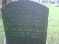 Cemetery Transcription: Mary E. Crawford; Wife of Wm. A. Goodfellow; Died Oct. 25, 1908; Aged 52 Yr's & 7 Mo's; William Aiken Goodfellow; Born Aug 20, 1855; Died Feb 7, 1940; Joseph Irvine their son; Died Aug. 1, 1889; Aged 8 Mo's & 24 Dys; Also Infant (Mable Grove Cemetery, Dundalk, Block "D", Plot 11, Grey Roots Archives, Aug 14 2009) per GEDCOM of B. M. Acheson, July 23, 2009.2,8,9