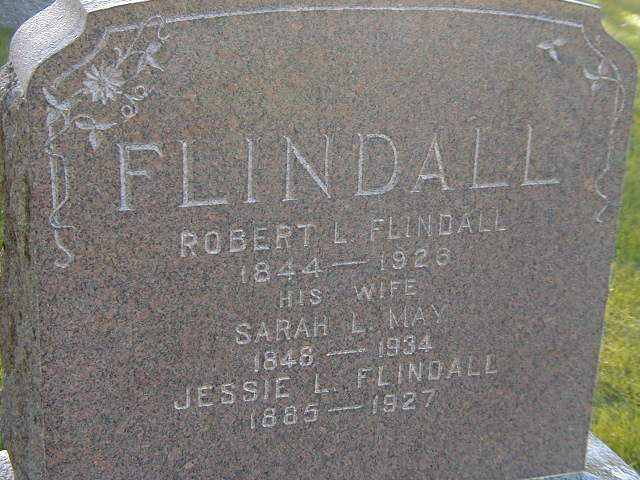 CEMSearch: Name: Jessie L. Flindall; Born: 1885; Died: 1927; Buried: St. George's Anglican Cemetery, Trenton, Sec D Row 20; Other names: Robert L. Flindall (1844-1926), Sarah L. Flindall (May)(1848-1934) per Death Reg'n.2,7,5