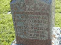 Minnie Flindall was born on 18 December 1867 at Trenton, Hastings Co., Ontario; Date Dec 18 1867 per Memorial. Date 1867 & location Trenton per Death Reg'n. Date 1867 & location Ont. per 1891 Census. Date 1867 & location Ont. per 1881 Census. Date 1867 & location Trenton per marr. reg'n.1,2,3,4,5 She appeared on the census of April 1871 at North Marysburgh Twp., Prince Edward Co., Ontario; Age 4 at 1871 Census: see Reuben Flindall.6 She appeared on the census of April 1881 at Trenton, Hastings Co., Ontario; Age 14 at 1881 Census: see Byron Flindall (brother.)2 She appeared on the census of April 1891 at Trenton, Hastings Co., Ontario; Age 24 at 1891 Census: see Robert A. Barber (brother-in-law.)2 She lived on 28 December 1892 at Trenton, Hastings Co., Ontario; Residence Trenton per marr. reg'n.3 As of 28 December 1892,her married name was Weaver.7 She married Charles Allen Weaver, son of John Weaver and Elizabeth "Betsy" Young, on 28 December 1892 at Trenton, Hastings Co., Ontario; Marriage Reg'n.#004911: Groom: Charles Allen Weaver; Age: 31; Res. & Born: Trenton; Status: bachelor; Occ.: Commercial traveller; Parents: John Weaver & Elizabeth Young; Bride: Minnie Flindall; Age: 26; Res. & Born: Trenton; Status: spinster; Parents: Reuben Flindall & Helen McFall; Wit.: May Booker & Robert ??, Trenton; Date: Dec 28 1893; Place: Trenton; Rel.: Pres. & CE; Performed by: F. W. Armstrong; Reg'r.: Geo. Gordon, Trenton (Ontario Marriage Registration, #004911-1892, ancestry.com.)7 Minnie Flindall died on 9 May 1899 at Trenton, Hastings Co., Ontario, at age 31; Death Reg'n.#011633: Name: Minnie Weaver; Date: May 9 1899; Age: 32; Res.: Dundas St., Trenton; Status: married; Born: Trenton; Cause: Consumption; Phys.: Dr. J. S. Sharie; Inf.: Chas. Flindall; Reg'd.: May 10 1899; Reg'r.: Geo. Gordon (Ontario Death Registration, #011633-1899, ancestry.com.)8 She was buried on 11 May 1899 at St. George's Anglican Cemetery, Trenton, Northumberland Co., Ontario; Memorial: (See Exhibit) In Memory of; Minnie Flindall; Wife of; Charles Weaver; Dec 18 1867; May 9 1899 (St. George's Anglican Cemetery, Trenton, Sep 24 2005.)5