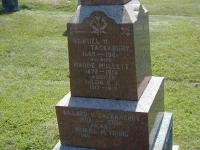 Date Jan 2 1901 & location Thurlow Twp. per GEDCOM of Meredith, June 30 2010.1,7 Maude Mullett appeared on the census of April 1901 at Brighton, Northumberland Co., Ontario; Age 34 at 1901 Census: see Samuel Tackaberry.4 She appeared on the census of 1911 at Brighton, Northumberland Co., Ontario; Age 41 at 1911 Census: see Samuel Tackaberry.5 She died on 18 May 1918 at Brighton, Northumberland Co., Ontario, at age 47; Death Reg'n.#028543: Name: Maud Tackabury; Date: May 18 1918; Age: 47y 6m; Res.: Brighton; Born: Cannifton; Burial: Brighton; Status: married; Parents: Daniel Mullett & ? ; Casue: tuberculosis, 2 yrs; Phys. & Inf.: F. M. Dure, Brighton; Reg'd.: May 20 1918 (Ontario Death Registration, #028543-1918, ancestry.com) Date 1918 per Memorial.2,8 She was buried on 20 May 1918 at Mount Hope Cemetery, Brighton, Northumberland Co., Ontario; Memorial: (See Exhibit) Samuel H;Tackabury; 1865 - 1941; His Wife; Maude Mullett; 1870 - 1918; Daughter; Hilda E J; 1912 - 1913; Willard V. Tackaberry; 1908 - 2000; His Wife; Muriel M Young; 1909? - (Mount Hope Cemetery, Brighton, July 10 2004.)2