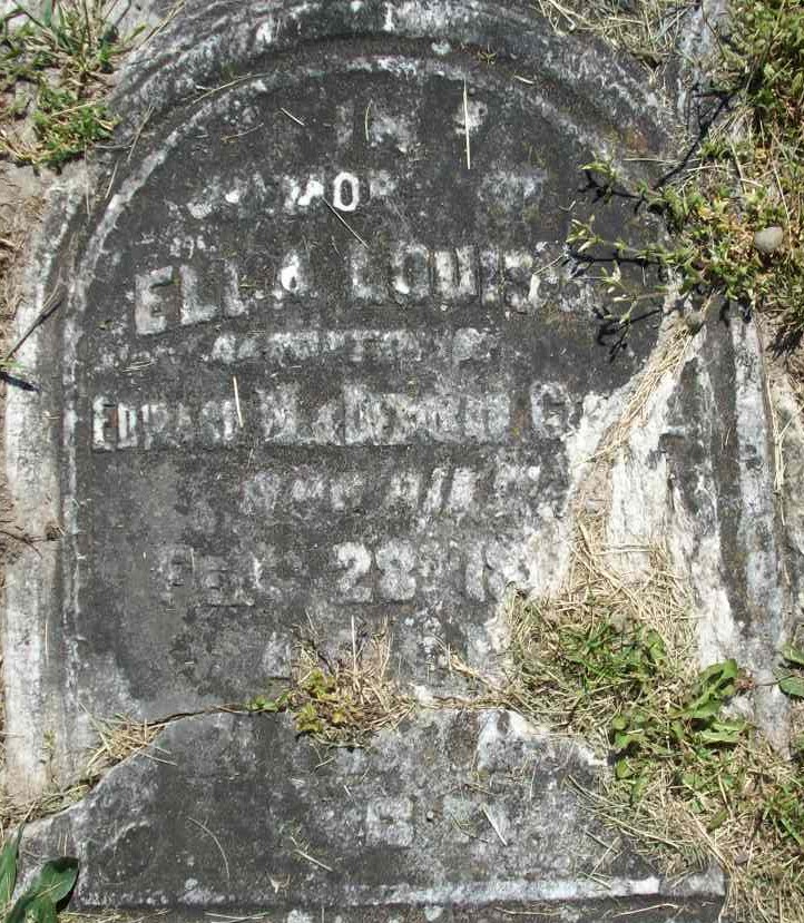 CemSearch: Name: Ella Louise George; Born: - ; Died: Feb 28 1877; Age: 21y 7m; ID: MTHOPE83; No other names; Cemetery: Mount Hope Cemetery, Conc A, Lot 35, Brighton Twp., Brighton Village, Northumberland Co. SEC 1 Row 6; Note: Daughter of Edward M. and Deborah George. (https://www.cemsearch.ca/burial/?pid=MTHOPE83%5E0)