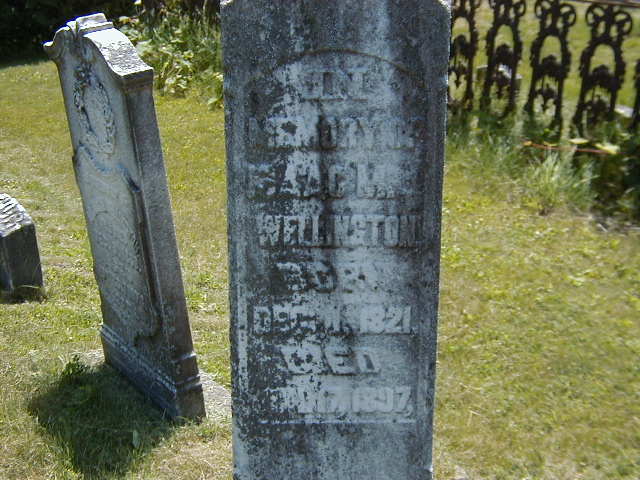 N.B. All orders in his line of business, for Bride's Cakes, Party Cakes etc, will be promptly attended to and executed in the neatest manner. These, with all other articles in the Bakery of Confectionary Lines, he will sell as cheap (if not cheaper) than at any other establishment between Kingston and Toronto." from page 238 of The Tobey Book. in 1853 at Brighton, Northumberland Co., Canada West.9 He lived on 7 September 1857 at Conc B Lot 33, Brighton Twp., Northumberland Co., Canada West; Land Registry Record (Grant A724) show that Josiah D. Wellington granted "north west part 26 acres with part of original allowance for road in rear of lot 33 & subject to a mortgage" Lot 33, Concession B, Brighton Village, Northumberland Co. to Isaac M. Wellington. ITS Date: Sep 7 1857. Reg'n. Date: Sep 8 1857. (Ontario Land Registry Records, Northumberland Co., Brighton Village, Book 012, page 004 of 203, OnLand.ca.)11 He "On November 24, 1858, the Village of Brighton was incorporated as a Municipality, separate from the Township. The unaugural meeting was held at Nix's Hall located at 99 Main Street on January 1, 1859. The first Reeve was Henry Squire and first Councillors were Alexander Bettes, Isaac Wellington, Robert Garbutt and Josiah Proctor." from page 74 of "The Municipaliy of Brighton" published in 2006. on 24 November 1858 at Brighton, Northumberland Co., Canada West.10 He appeared on the census of April 1861 at Brighton, Northumberland Co., Canada West; Age 40 at 1861 Census: Wellington, I. M., 40, b. UC, WM, Confectioner, married; Ann, 40, b. UC, WM, married; E. Ann, 13; A. M. (m), 11; E. V.(f), 8; A. E.(f), 6; Elizabeth, 81, b. England, WM, widow (1861 Census: Brighton Village, pg. 312 of 899, line 41 - ancestry.com.)8 He was "Bakeries are first mentioned in 1869. Jacob Smith on Main Street and I. M. Wellington." from page 184 of "The Municipality of Brighton" published by Brighton Municipal Council in 2006. in 1869 at Brighton, Northumberland Co., Ontario.10 He lived on 19 December 1869 at Brighton, Northumberland Co., Ontario; Informant for Death Reg'n. of his son Arthur Melbourne Wellington.6 He appeared on the census of April 1871 at Brighton, Northumberland Co., Ontario; Age 49 at 1871 Census: Wellington, Isaac M., 49, b. Ont., Eng., WM, Baker, married; Ann, 49, b. Ont., Scot., WM, married; Eva V., 18, b. Ont., Eng; Ada, 15; Burley, William, 20, b. Ireland, Irish, WM, single; Stephens, Stephen, 7, b. Ont., Eng; Wellington, Elizabeth, 91, b. England, Eng., WM, widow (1871 Census: Brighton Village, dist. 55, sub-dist. D, pg. 35, line 20.)2 He was Return of Industrial Establishments: (pg. 4) Name: Isaac M. Wellington; Business: Bakery & Confectionery; Product: Bread, cake, cookies; Empl.: 2 males (1871 Census: Brighton Village) in April 1871 at Brighton, Northumberland Co., Ontario.2 He lived on 31 January 1873 at Conc B Lot 33, Brighton Twp., Brighton, Northumberland Co., Ontario; Land Registry Records (Grant B405) show that Isaac M. Wellington & wife sold 26 acres in the north west part of lot 33, concession B, Brighton Twp. to Cecil A. Harnes. ITS Date: Jan 31 1873. Reg'n. Date: Jan 31 1873. (Ontario Land Registry Records, Northumberland Co., Brighton Village, Conc B, Book 12, Pg 005 of 203, OnLand.ca.)11 He appeared on the census of April 1881 at Brighton, Northumberland Co., Ontario; Age 59 at 1881 Census: Wellington, Isaac M., 59, b. Ont., Eng., CM, Clerk of Church Treasury, married; Ann, 59, b. Ont., Eng., CM, married; Addie, 25, b. Ont., Eng., CM, music teacher, single; Allen, Sarah J., 28, b. Ont., Eng., CM, milliner, single (1881 Census: Brighton Village, dist. 123, sub-dist. d, pg. 62, line 19 - ancestry.com.)5 He "I. M. Wellington read his essay on the "History of the Lodge."" from United Lodge No. 29 A.F. & A.M., G.R.C., Brighton, Ontario History 1818-1996 written by W. R. Topham, page 8 on 6 March 1890 at United Lodge No. 29, Brighton, Northumberland Co., Ontario. He appeared on the census of April 1891 at Brighton, Northumberland Co., Ontario; Age 69 at 1891 Census: Wellington, I. M., 69, b. Ont., p.b. USA & England, Meth., Insurance Agent, married; Ann, 70, b. Ont., p.b. England & Scotland, Meth., married; Addie E., 30, b. Ont., p.b. Ont., Meth., pianist, single (1891 Census: Brighton Village, dist. 98, sub-dist. b-2, pg. 20, line 23 - ancestry.com.)4 He "*This sketch of Presqu’isle was written by the late Mr. I. M. Wellington, of Brighton, and appeared in The Brighton Ensign of the following dates: Jan. 25th, Feb. 1st, Feb. 8th., and Feb. 15th, 1895. It has been transmitted to the Ontario Historical Society by Mr, W. E. Lear, of Brighton." taken from bottom of page 61, beginning of Chapter V. "Presqu'isle" from Papers & Records, Vol. 4-6, 1905, Ontario Historical Society - from Ed Burtt's collection. Also appears in The Tobey Book. on 15 February 1895 at Presqu'ile Point, Northumberland Co., Ontario. He "In 1897, W. Brother, I. M. Wellington died at the age of 86. He was the first white child born at Presqu'ile. Thoughout this book the reader will have found references to this remarkable man, as he was the author of the article quoted from the Ontario Historical Society's Paper and records - Vol. V, 1904. I. M. Wellington was also important in the Masonic Lodge, for he lectured before them on various occassions, and wrote a brief history of the United States. Mr. Wellington's mother was, previous to her second marriage, the widow of Captain Selleck." from page 528 of The Tobey Book.
