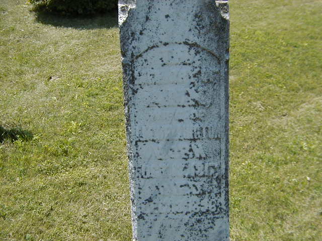 Nancy "Ann" Wright was born on 12 October 1822 at Prince Edward Co., Upper Canada; Date Oct 12 1817 per Memorial. Date Oct 12 1817 & location Prince Edward Co. per Death Reg'n. Oct Date 1821 & location Ont. per 1891 Census. Date 1822 & location Ont. per 1881 Census. Date 1822 & location Ont. per 1871 Census. Date 1821 & location UC per 1861 Census. Date 1820 & location Cda. per 1851 Census.1,3,4,5,6,7 As of circa 1845,her married name was Wellington.1 She married Isaac Maitland Wellington, son of Josiah Dix Wellington and Elizabeth Gibson, circa 1845 at Northumberland Co., Canada West; per 1851 Census. per 1871 Census.1,5 Nancy "Ann" Wright appeared on the census of 1852 at Brighton Twp., Northumberland Co., Canada West; Age 31 at 1851 Census: see Isaac Wellington.5 She appeared on the census of April 1861 at Brighton, Northumberland Co., Canada West; Age 40 at 1861 Census: see Isaac M. Wellington.6 She appeared on the census of April 1871 at Brighton, Northumberland Co., Ontario; Age 49 at 1871 Census: see Isaac M. Wellington.1 She appeared on the census of April 1881 at Brighton, Northumberland Co., Ontario; Age 59 at 1881 Census: see Isaac M. Wellington.4 She appeared on the census of April 1891 at Brighton, Northumberland Co., Ontario; Age 70 at 1891 Census: see Isaac M. Wellington.3 She died on 13 December 1896 at Brighton, Northumberland Co., Ontario, at age 74; Death Reg'n.#014091: Name: Mrs. Ann Wellington; Date: Dec 13 1896; Age: 79; Status: housewife; Born: Prince Edward Co; Cause: old age, heart failure, 6 mo; Phys.: C. M. Sanford; Inf.: J. B. Demill (son-in-law); Reg'd.: Dec 14 1896; Rel.: Meth; Reg'r.: J. H. Morrow (Ontario Death Registration, #014091-1896, ancestry.com.)8 She was buried on 15 December 1896 at Mount Hope Cemetery, Brighton, Northumberland Co., Ontario; Memorial: (See Exhibit) In; Memory of; Ann; Wife of; I. M. Wellington; Born: Oct. 12 1817; Died: Dec 13 1896 (Mount Hope Cemetery, Brighton, Jul 10 2004.)7