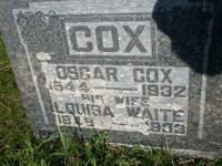 CemSearch: Name: Louisa Cox; Maiden: Waite; Born: 1848; Died: 1933; ID: CSTLTN308; Other names: Cox, Oscar (1844-1932); Cemetery: Castleton Cemetery, Conc 7 Lot 32, Cramahe Twp., Sec B-S Row 6 Plot 5 (https://www.cemsearch.ca/burial/?pID=CSTLTN308%5E1.)4,3