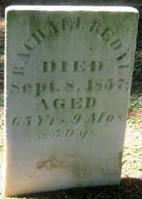 FindaGrave: Name: Rachel Ferguson Bedal; Birth: 3 Dec 1791, New York, USA; Death: 8 Sep 1857 (aged 65), Hallowell Twp., Prince Edward Co., Ontario, Canada; Burial: Bloomfield East Friends Cemetery, Bloomfield, Prince Edward Co., Ontario, Canada; Memorial ID: 138596740 (https://www.findagrave.com/memorial/138596740/rachel_bedal.)2,3