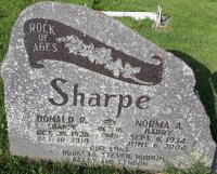 Norma Audrey Harry was born on 6 September 1924; Date Sep 6 1924 per Memorial. per Obit of Donald Ray Sharpe.1,2 As of 16 October 1948,her married name was Sharpe.1 She married Donald Ray Sharpe, son of Stewart Godfrey Sharpe and Mary Edna Loomis, on 16 October 1948 at Ontario; Date Oct 16 1948 per Memorial. per Obit of Donald Ray Sharpe.1,2 Norma Audrey Harry died on 6 June 2004 at age 79; Date Jun 6 2004 per Memorial. per Obit of Donald Ray Sharpe.1,2 She was buried on 9 June 2004 at Carman Cemetery, Brighton Twp., Carman, Northumberland Co., Ontario; Memorial: (see Exhibit) Rock of Ages; Sharpe; Donald R; Sharpe; Oct. 28, 1928; Oct. 10, 2910; Oct. 16, 1948; Normal A; Harry; Sept. 6, 1924; June 6, 2004; Our Sons; Douglas, Steven, Robbin; Kelly and Lyndon (Carman Cemetery, Brighton Twp., image by Dan Buchanan, Aug 12 2023.)2