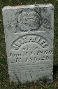 FindaGrave: Name: Joseph Lee; BIRTH: 1812; DEATH: 21 Jun 1860 (aged 47–48); BURIAL: Carrying Place Cemetery, Carrying Place, Northumberland Co., Ontario, Canada; MEMORIAL ID: 182366524 (https://www.findagrave.com/memorial/182366524/joseph-lee?_gl=1*x71xwl*_ga*MTM2OTMxODYxNS4xNjM1ODgwODE4*_ga_4QT8FMEX30*MTY1MTQ1MjU1MS4xMS4xLjE2NTE0NTM3ODMuMA..)3