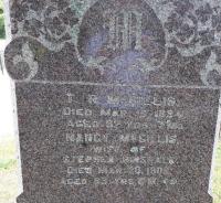 Note: Son Henry Thomas McGillis is on the other side of the stone. Story is that Tarrance McGillis (T. R.) left and went to the US, died in Montana. His name was added to the memorial here even though his was not buried here. The mother of Henry Thomas McGillis, Nancy, first wife of T. R., is shown here as wife of second husband Stephen Hinsdale.5