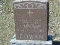Charles Joseph Cowan was born on 4 July 1901 at Brighton Twp., Northumberland Co., Ontario; Birth Reg'n.# : Name: Charles Cowan; Date: Jul 4 1901; Parents: Michael Cowan & Catherine Gilbride.. no pg. 2 ... (Ontario Birth Registration, # ... , ancestry.com.)1 He appeared on the census of 1911 at Brighton Twp., Northumberland Co., Ontario; Age 9 at 1911 Census: see Michael Joseph Cowan.2 He Charles Cowan appears in The Latimer Photos, taken by Hugh Latimer in the latger 1920s and early 1930s at his father's General Store in Orland. (The Latimer Photos, Codrington Public Library) circa 1930 at Brighton Twp., Orland, Northumberland Co., Ontario.4 He was buried in 1956 at Codrington Catholic Cemetery, Brighton Twp., Codrington, Northumberland Co., Ontario; Memorial: (See Exhibit) Michel C. Cowan; 1864 - 1929; His Wife; Catherine Gilbride; 1874 - 1959; Charles J. 1901 - 1956; COWAN (Codrington Roman Catholic Cemetery, Brighton Twp.)3 He died in 1956 at Ontario; Date 1956 per Memorial.3