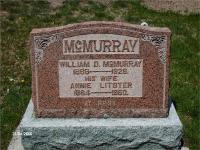 William D. McMurray was born on 31 July 1868 at Haldimand Twp., Northumberland Co., Ontario; Date 1868 per Memorial. Date Jul 31 1869 & location Haldimand Twp. per Death Reg'n. Date 1869 & location Ont. per 1921 Census. Date Jul 1869 & location Ont. per 1911 Census. Date Jul 20 1867 & location Ont. rural per 1901 Census. Date 1869 & location Ont. per 1891 Census. Date 1869 & location Ont. per 1881 Census. Date 1869 & location Ont. per 1871 Census.1,3,4,5,2,6,7,8 He appeared on the census of April 1871 at Haldimand Twp., Northumberland Co., Ontario; Age 2 at 1871 Census: see James McMurray.3 He appeared on the census of April 1881 at Haldimand Twp., Northumberland Co., Ontario; Age 12 at 1881 Census: see James McMurray.1 He appeared on the census of April 1891 at Haldimand Twp., Northumberland Co., Ontario; Age 22 at 1891 Census: see John McMurray (grandfather.)7 He married Annie Litster, daughter of William Litster and Catherine "Katie" Chipps, circa 1893 at Ontario; per 1901 Census.5 William D. McMurray appeared on the census of April 1901 at Haldimand Twp., Northumberland Co., Ontario; Age 33 at 1901 Census: McMurray, William, 33, b. Ont. r. Jul 20 1867, Irish, Pres., farmer, married; Annie, 34, b. Ont. r. Sep 27 1866, Scot., Pres., married; William, 6, b. Ont. r. Jul 22 1894, Irish, Pres., son; Edna, 4, b. Ont. r. Oct 9 1896, daughter (1901 Census: Haldimand Twp., Northumberland Co., dist. 96, sub-dist. C-6, pg. 6, line 1 - ancestry.com.)5 He appeared on the census of 1911 at Haldimand Twp., Northumberland Co., Ontario; Age 42 at 1911 Census: McMurray, William, 42, b. Ont. Jul 1867, Irish, Pres., farmer, married; Ann, 42?, b. Ont. Sep 1869?, Irish, Pres., married; William, 16, b. Ont. Jul 1895, son; Edna, 14, b. Ont. Oct 1897, daughter; Mary, 9, b. Ont. Oct 1902, daughter; Stanley, 7, b. Ont. Dec 1904, son; Robert, 3, b. Ont. Sep 1907, son; Mary Jane, ?80?, b. Ont. Sep 1836?, Irish, Pres., Mother, widow (1911 Census: Haldimand Twp., Northumberland Co., dist. 102-7, sub-dist. 2-5, pg. 5, line 9 - ancestry.com.)6 He lived on 5 August 1911 at Haldimand Twp., Vernonville, Northumberland Co., Ontario; Informant for Death Reg'n. of his mother Mary Jane (Bell) McMurray.4 He lived in 1914 at Haldimand Twp., Northumberland Co., Ontario; Resident 12 yrs. per Death 1926 - Death Reg'n.4 He appeared on the census of 3 June 1921 at Haldimand Twp., Vernonville, Northumberland Co., Ontario; Age 52 at 1921 Census: McMurray, William, 52, b. Ont., p.b. Ont., Eng., Pres., ?teamster, County Road?, married; Annie, 54, b. Ont., p.b. Ont., Eng., Pres., married; Stanley, 17, son; Robert, 13, son (1921 Census: Haldimand Twp., Northumberland Co., dist. 107, sub-dist. 16, pg. 3, line 17 - Vernonville - ancestry.com.)8 He lived on 14 November 1922 at Haldimand Twp., Vernonville, Northumberland Co., Ontario; Informant for Death Reg'n. of his aunt Mary Jane McMurray.4 He died on 28 April 1926 at Haldimand Twp., Northumberland Co., Ontario, at age 57; Death Reg'n.#024971: Name: William McMurray; Date: Apr 28 1926; Age: 57y 8m; Res.: Haldimand Twp., 12 yrs; Born: Haldimand, Jul 31 1869; Status: married; Occ.: farmer; Parents: James McMurray, b. Ireland & Mina Bell, b. ? ; Cause: influenza, 5 days; Phys.: Dr. Wilkins, Cobourg; Inf.: Mrs. Wm. McMurray, Vernonville, wife; Burial: Vernonville, Apr 30 1926; Und.: James Blacklock & son, Grafton; Reg'd.: May 3 1926; Reg'r.: James Blacklock, Grafton (Ontario Death Registration, #024971-1926, ancestry.com.)9 He was buried on 30 April 1926 at Vernonville Cemetery, Vernonville, Northumberland Co., Ontario; Memorial: (See Exhibit) McMURRAY; William D. McMurray; 1868 - 1926; His Wife; Annie Litster; 1864 - 1960 (Vernonville Cemetery, Vernonville, image from ancestry.com, "InMemoryOfOurAncestors" added on Mar 1 2009) Per Death Reg'n.4,2