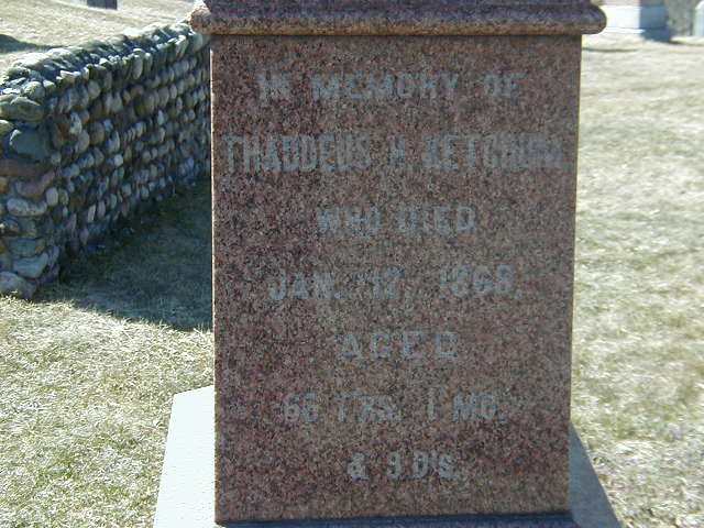 Note: The property was acquired by Thomas Webb, father of Hiram Thomas Webb. on 13 March 1866 at Corner of Main and Prince Edward St., Brighton, Northumberland Co., Canada West.7 He lived on 11 January 1868 at Village Lot 42, Main St. South, Brighton, Northumberland Co., Ontario; Land Registry Records (Will A93) show that the Will of Thadeus H. Ketchum granted "as in Will set forth", of Village Lot 42, Brighton Village, Northumberland Co. to Hiram E. Ketchum & others. ITS Date: Jan 11 1868. Reg'n. Date: Apr 20 1868. (Ontario Land Registry Records, Northumberland Co., Brighton Village, Book 004, pg. 237 of 399, OnLand.ca.)6 He died on 12 January 1868 at Brighton Twp., Northumberland Co., Ontario, at age 65; Date Jan 12 1868 per Memorial.4 He was buried on 14 January 1868 at Mount Hope Cemetery, Brighton, Northumberland Co., Ontario; Memorial: (See Exhibit) In Memory of; Thaddeus H. Ketchum; Who Died; Jan. 12, 1868; Aged; 66 Y'rs., 1 Mo; & 9 D's (Mount Hope Cemetery, Brighton, Apr 2 2006.)4