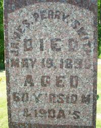 CemSearch: Name: James Perry Smith; Born: - ; Died: May 19 1896; Age: 60y 10m 19d; ID: MTHOPE267; Other names: Smith, Mary Jane [Bennett] ( -1898); Cemetery: Mount Hope Cemetery, Conc A Lot 35, Brighton Twp., Brighton Village, Northumbedrland Co., Sec 1 Row 13; Note: Husband of Mary Jane Bennett (https://www.cemsearch.ca/burial/?pid=MTHOPE267%5E0.)2,11