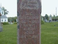 Note: Hugh and Allen Ketcheson are below.6 He appeared on the census of April 1891 at Madoc Twp., Hastings North Co., Ontario; Age 77 at 1891 Census: Ketcheson, Daniel, 77, b. Ont., p.b. Ont., Meth., farmer, married; Almira, 75, b. Ont., p.b. US & Ont., Meth., married; Hugh, 37, b. Ont., p.b. Ont., Meth., farmer, married; Ida Eliza, 39, b. Ont., p.b. Ont., Meth., married; Maggie, 17, b. Ont., p.b. Ont., granddaughter; ?Arthur?(m), 13; May, 9 (1891 Census: Madoc Twp., Hastings North Co., dist. 74, sub-dist. h-2, pg. 23, line 20 - ancestry.com.)7 He appeared on the census of April 1901 at Madoc Twp., Hastings North Co., Ontario; Age 86 at 1901 Census: see Ellen Ketcheson (son.)1 He died on 4 November 1902 at Madoc Twp., Hastings Co., Ontario, at age 87; Death Reg'n.#011492: Name: Daniel C. Ketcheson; Date: Nov 4 1902; Age: 87; Res.: Madoc Twp; Status: married; Occ.: farmer; Born: Sidney Twp; Cause: heart failure; Phy. & Inf.: Dr.S. Eagleson; Rel.: Meth; Reg'd.: Oct 6 1902; Reg'r.: William T. Allen (Ontario Death Registration, #011492-1902, ancestry.com) Date 1902 per Memorial.10,5 He was buried on 6 November 1902 at Hazzards Corners Cemetery, Madoc Twp., Hazzards Corners, Hastings Co., Ontario; Memorial: (See Exhbiti) D. C; Ketcheson; 1816 - 1902; His Wife; Almira; Acker; 1816 - 1896 (Hazzards Corners Cemetery, Madoc Twp., by Dan, June 23, 2006.)5