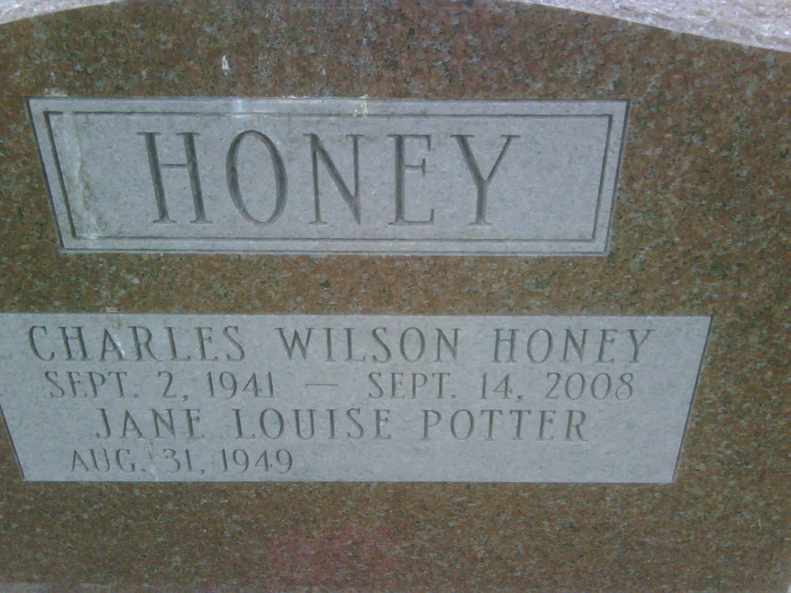 Charles Wilson Honey was born on 2 September 1941 at Percy Twp., Northumberland Co., Ontario; Date Sep 2 1941 per Memorial. per CEMSearch record for mother Marion Frances Lillian (Wilson) Honey. Date Sep 2 1941 per "The Losie Family" sent to me via email by Garth Allen, Jul 11 2014.1,2,3 He died on 14 September 2008 at age 67; Date Sep 14 2008 per Memorial.2 He was buried on 17 September 2008 at Warkworth Cemetery, Warkworth, Northumberland Co., Ontario; Memorial: (See Exhibit) HONEY; Charles Wilson Honey; Sept. 2, 1941 - Sept. 14, 2008; Jane Louise Potter; Aug. 31, 1949 - (Warkworth Cemetery, Warkworth, Jul 7 2009.)2