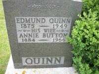 Annie Button was born in 1884 at Haldimand Twp., Northumberland Co., Ontario; Date 1884 per Memorial. Date 1884 & location Haldimand per marr. reg'n. - Edmund Quinn.1,2 As of before 1905,her married name was Warren.2 She married ? Warren before 1905; per marriage reg'n. of Edmund Quinn and Annie (Button) Warren.2 As of circa 1915,her married name was Quinn.1 Annie Button lived on 1 June 1921 at Colborne, Northumberland Co., Ontario; Residence Colborne per marr. reg'n. - Edmund Quinn.2 She married Edmund Quinn, son of William Henry Quinn and Mary Ann Lynn, on 1 June 1921 at Oshawa, Ontario; Marriage Reg'n.#017371: Groom: Edmund Quinn; Age: 45; Res.: Colborne; Born: Haldimand; Status: widower; Occ.: Undertaker; Rel.: Meth; Parents: Wm. Henry Quinn & Mary Ann Lynn; Bride: Annie E. Warren; Age: 37; Res.: Colborne; Born: Haldimand; Status: widow; Occ.: dressmaker; Rel.: Meth; Parents: Wm. Henry Button & Emma Harnden; Expected Res.: Oshawa; Wit.: William Button, Kingston & Carrie Lathrope, Bowmanville; Date: Jun 1 1921; Place: Oshawa; Performed by: Wm. Henry Spargo, Bowmanville, Ont., Meth; Sworn: Colborne, May 31 1921; Reg'r.: H. J. Mayhew, Colborne (Ontario Marriage Registration, #017371-1921, ancestry.ca) per Memorial.1,3 Annie Button died in 1966; Date 1966 per Memorial.1