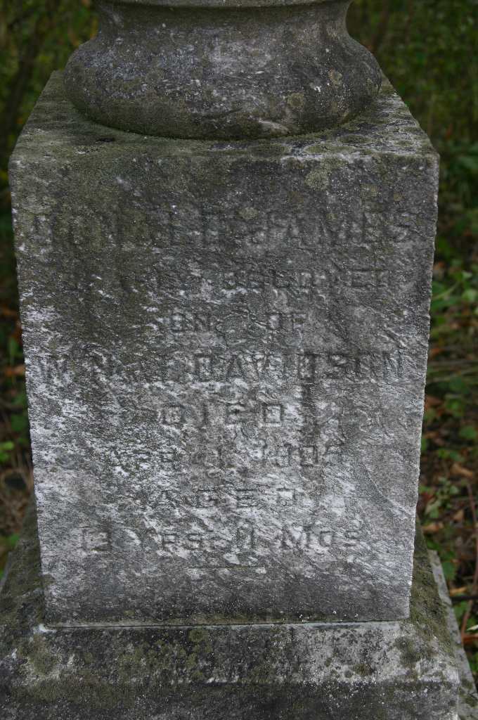 Donald James Davidson was born on 1 May 1891 at Brighton, Northumberland Co., Ontario; Date May 1891 per Memorial - age 13y 11m at death Apr 1 1905. Date May 1 1891 & location Ont. rural per 1901 Census. Date May 1 1891 & location Brighton per family tree of Alex Hume, Oct 26 2017.1,3,2 He appeared on the census of 8 April 1901 at Brighton, East Northumberland Co., Ontario; Age 9 at 1901 Census: see Walter Davidson.3 He died on 1 April 1905 at Brighton, Northumberland Co., Ontario, at age 13; Date Apr 1 1905 per Memorial. per family tree of Alex Hume, Oct 26 2017.1,2 He was buried on 3 April 1905 at Mount Hope Cemetery, Brighton, Northumberland Co., Ontario; Memorial: (see Exhibit) Donald James; Dearly Beloved; Son of; W.N. & I. Davidson; Died; Apr. 1, 1905; Aged; 13 Y'rs. & 11 Mos. (Mount Hope Cemetery, Brighton, pic by Dan Buchanan, Oct 3 2005.)2