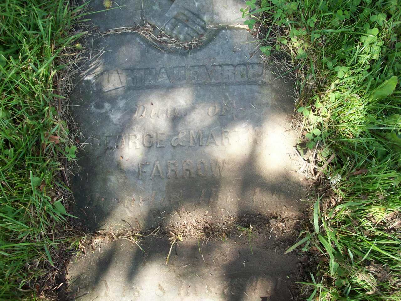 CemSearch: Name: Martha U. Farrow; Born: - ; Died: Apr 2, 1884; Age: 19; ID: 80658; Note: Old flat slab, dau. of George Farrow & Martha Tate, sibling of Charles Farrow; Cemetery: Salem Cemetery, Cramahe Twp., Sec 2 Row 16 Plot 10; No other names.1,2,3