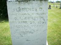 Florence D. Chapin was born in 1852 at Colborne, Northumberland Co., Canada West; Date 1852 per Memorial - age 54y at death Apr 30 1906. Date 1853 & location Ont. per 1871 Census. Date 1853 & location UC per 1861 Census. Date 1852 & location Colborne per family tree of BarbaraJElliott28 on ancestry.ca, May 3 02018.1,2,3,4 She appeared on the census of April 1861 at Cobourg, Northumberland Co., Canada West; Age 8 at 1861 Census: see Charles Winn (uncle.)4 She appeared on the census of April 1871 at Colborne, East Northumberland Co., Ontario; Age 18 at 1871 Census: see Otis A. Chapin.3 She died on 30 April 1906 at Colborne, Northumberland Co., Ontario; Date Apr 30 1906 per Memorial. Date Apr 30 1906 & location Colborne per family tree of BarbaraJElliott28 on ancestry.ca, May 3 02018.1,2 She was buried on 2 May 1906 at East Colborne Cemetery, Colborne, Northumberland Co., Ontario; Memoral: (See Exhibit) Florence D; Eldest Daughter of the late; O. A. Chapin; Died April 30, 1906; Aged 54 Years (East Colborne Cemetery, Colborne, July 4, 2009.)2