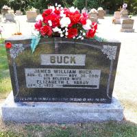 James William Buck was born on 2 August 1919 at Murray Twp., Northumberland Co., Ontario; Date Aug 2 1919 per Memorial. Date Aug 2 1919 per Obit. Date Aug 1919 & location Ont. per 1921 Census.1,2 He appeared on the census of 15 June 1921 at Murray Twp., Northumberland Co., Ontario; Age 1 1/2 per 1921 Census: see Walter Buck.1 He married Elizabeth L. "Betty" Vardy, daughter of Donald German Vardy and Hannah Ann Shaw Kieth, in 1961 at Bancroft, Ontario; " .. we finally got married when I was 38. We came to Brighton a year later in 1962. per Brighton's Own, June 28 2018.3 James William Buck died on 30 November 2001 at Trenton Memorial Hospital, Trenton, Hastings Co., Ontario, at age 82; Date Nov 30 2001 per Memorial. "Buck, James William (Veteran WWII RCAF) .. Suddenly at Trenton Memorial Hospital on Friday, November 30, 2001. James Buck of Brighton, at the age of 82 years, belvoed husband of Elizabeth (Vardy) Buck. Dear brother of Sylvia White of Belleville, Douglas Buck of Kenron Estates, Cecil Buck of Ancaster and the late Harold Buck, a Pudricky, and Ruth Neal. ... Interment at Mt. Evergreen." from Obits for Life -http://www.obitsforlife.com/obituary/5847/Buck-James-William.php (This link did not work second time.)2 He was buried on 3 December 2001 at Mount Evergreen Cemetery, Trenton, Northumberland Co., Ontario; Memorial: (See Exhibit) BUCK; James William Buck; Aug. 2, 1919 - Nov. 30, 2001; His Beloved Wife; Elizabeth L. Vardy; Feb. 2, 1923 - (Mount Evergreen Cemetery, Trenton, July 9 2018.)2