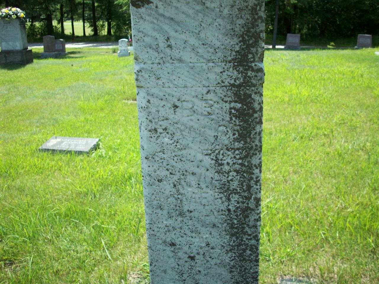 Elizabeth Elsie "Libbie" Pomeroy was born on 11 February 1895 at Cramahe Twp., Castleton, Northumberland Co., Ontario; Birth Reg'n.#022276: Name: Elizabeth Elsie Pomeroy; Date: Feb 11 1895; Parents: George Pomeroy &Mary D. George; Inf.: George Pomeroy, Carpenter, Castleton; Reg'd.: Mar 2 1895; Phys.: None; Reg'r.: H. P. Gould? (Ontario Birth Registration, #022276-1895, ancestry.ca) Date 1895 & location Cramahe Twp. per Death Reg'n.1,5 She died on 23 January 1897 at Cramahe Twp., Castleton, Northumberland Co., Ontario, at age 1; Death Reg'n.#017748: Name: Elizabeth E. Pomeroy; Date: Jan 23 1897; Age: 2y; Res. & Born: Cramahe Twp; Cause: scarlet fever, 1 week; Phys.: Dr. Stinson; Rel.: Meth; Inf.: George Pomeroy; Reg'd.: Jan 23 1897; Reg'r.: R. B. Walt, Cramahe (Ontario Death Registration, #017748-1897, ancestry.ca.)1,6 She was buried on 25 January 1897 at Castleton Cemetery, Castleton, Northumberland Co., Ontario; Memoral: (See Exhibit) Libbie; Pomeroy.... (Castleton Cemetery, Castleton, July 13 2009)(The writing on this stone is unclear except for the name near the top. Maybe check again one day.)