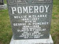 Gladys M. Pomeroy was born in 1915 at Ontario; Date 1915 per Memorial.1 As of circa 1940,her married name was Findlay.1 She married James I. Findlay circa 1940; per Memorial.1 Gladys M. Pomeroy was buried in 2001 at Castleton Cemetery, Castlleon, Northumberland Co., Ontario; Memorial: (See Exhibit) POMEROY; Nellie M. Clarke; 1885 - 1927; Wife of; George H. Pomeroy; 1874 - 1959; Their Daughter; Gladys M. Findlay; 1915 - 2001; Beloved Wife of; James I. Findlay; 1915 - 2007 (Castleton Cemetery, Castelton, July 15 2009.)1 She died in 2001; Date 2001 per Memorial.1