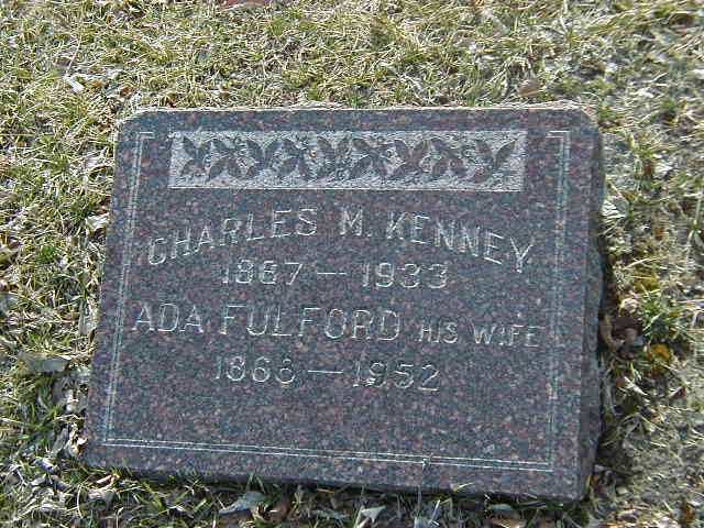 CemSearch: Name: Charles M. Kenney; Born: 1867; Died: 1933; ID: WOODS059; Other names: Kenney, Ada [Fulford](1868-1952); Cemetery: Woods Cemetery, Conc 1 Lot 12, Cramahe Twp., Sec N Row 9 Plot 4; Note: Husband of Ada (Fulford) married April 27, 1889 in Brighton, Son of John Kenney and Emily (Jones) Kenney,