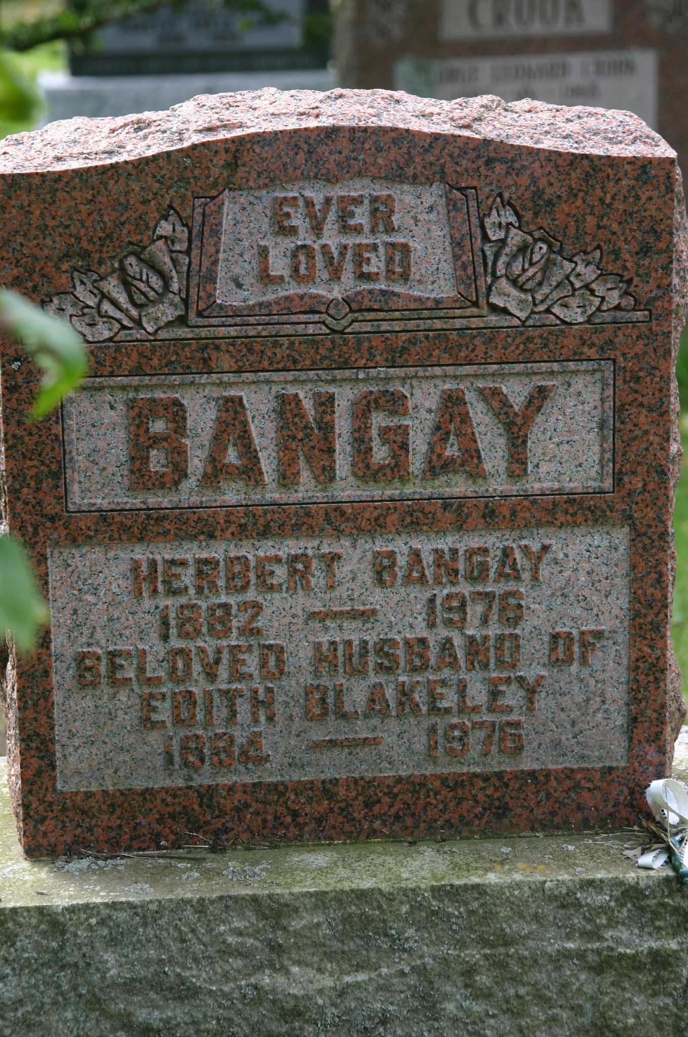 CemSearch: Name: Herbert Bangay; Born: 1882; Died: 1976; ID: MTHOPE890; Other names: Blakely, Edith (1884-1976); Cemetery: Mount Hope Cemetery, Brighton, sec 3 Row 13 (http://www.cemsearch.ca/burial/?action=selectionList&choiceBurialID=MTHOPE890%5E0.)4,5